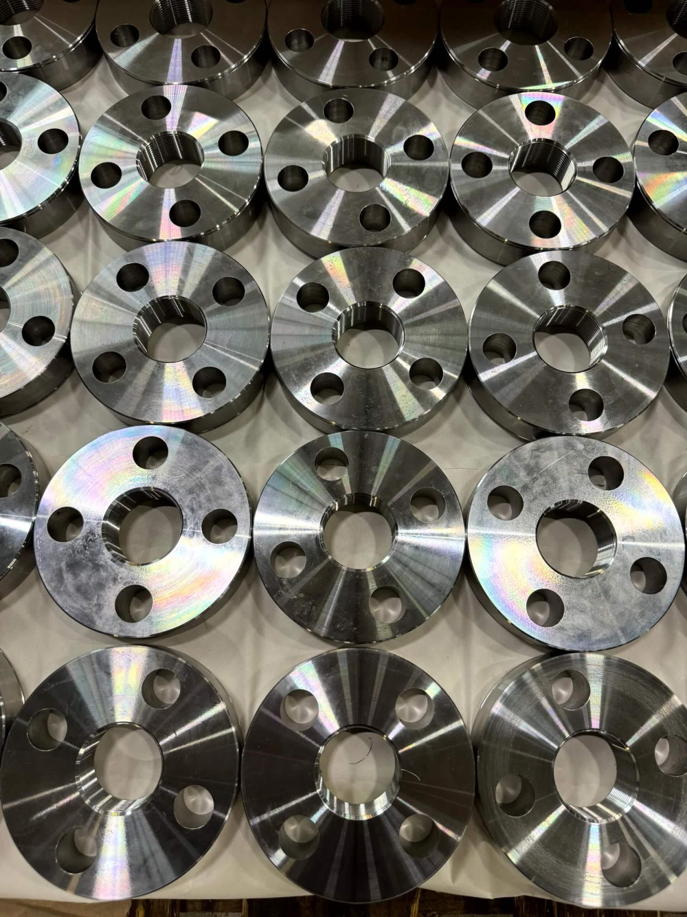 - производство стальных приварных фланцев различных параметров — вариант изготовления, рабочее давление, диаметр и прочее